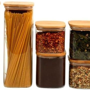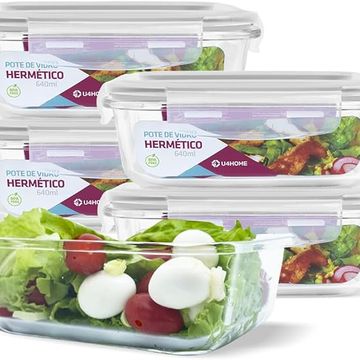 KIT 5 Potes de Vidro com Tampa Hermética 640ml