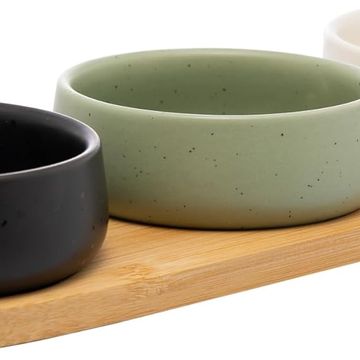 LYOR - Conjunto 3 Petisqueiras com Bandeja de Bambu